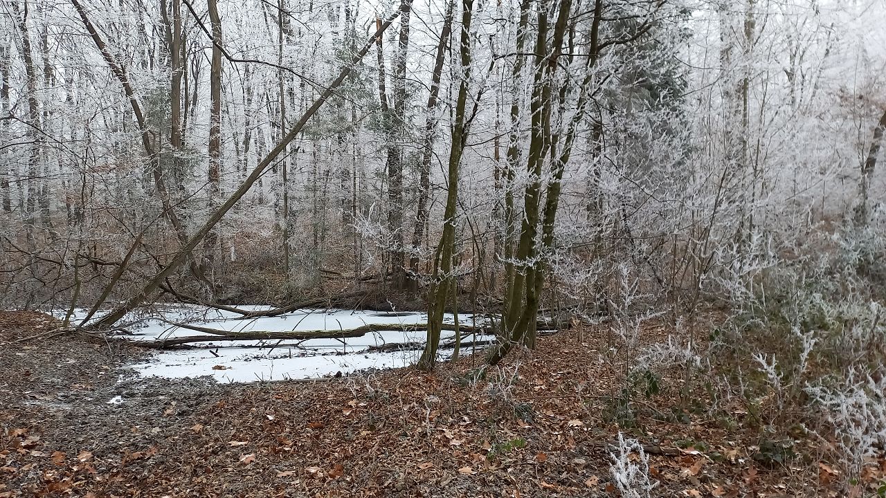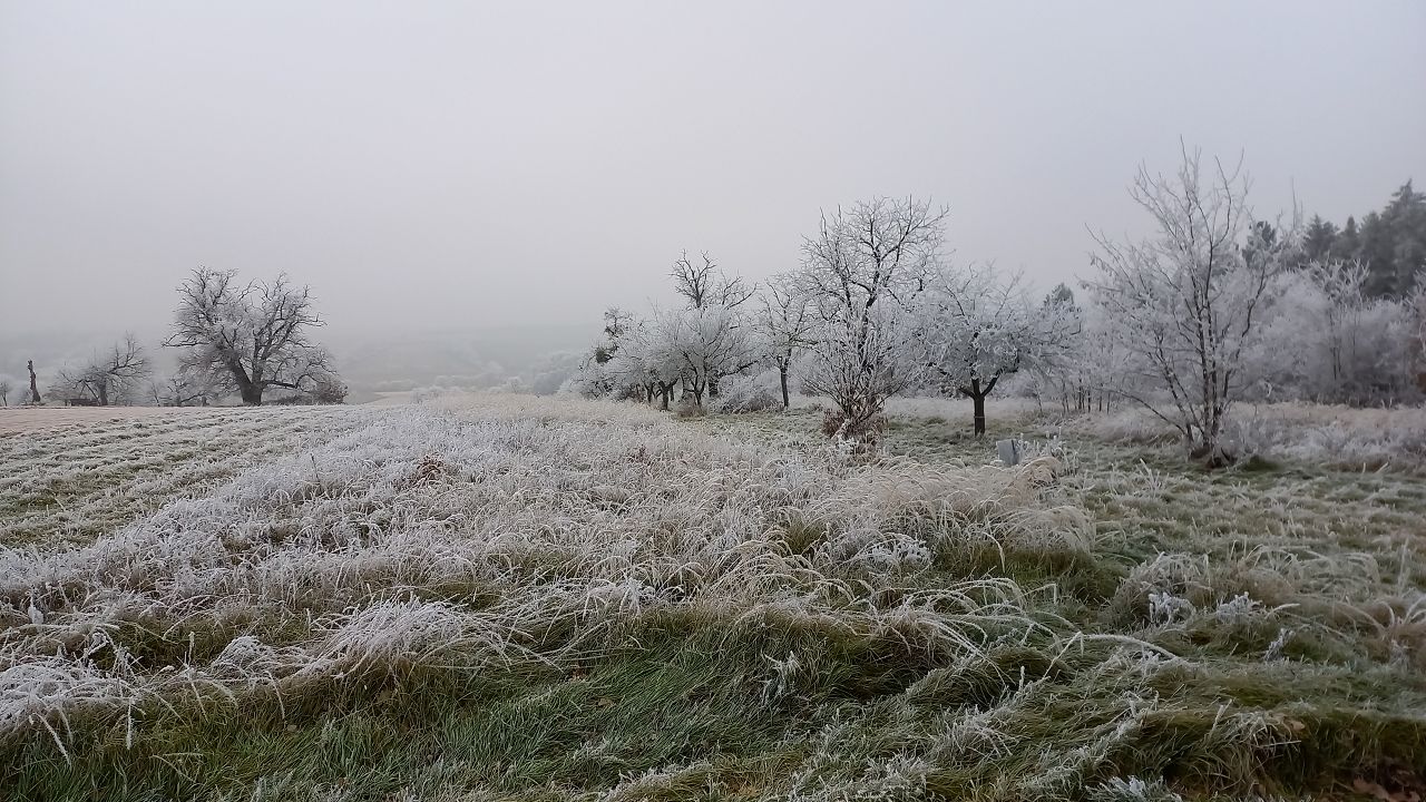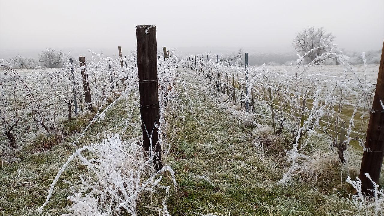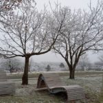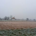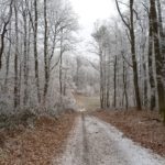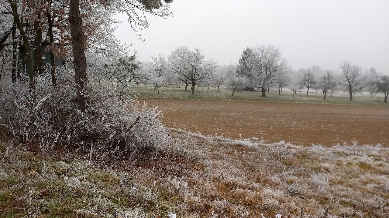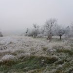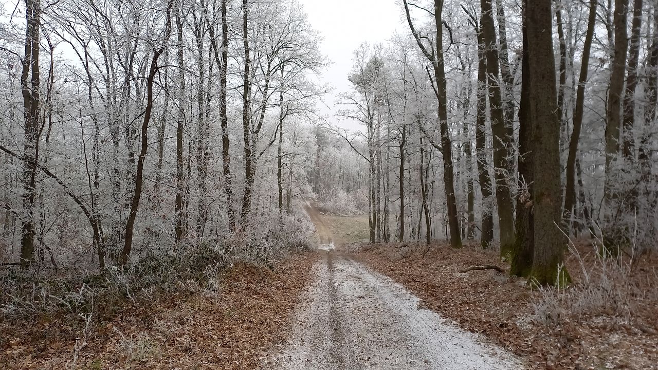Wir beginnen das Neue Jahr mit einer Wanderung zum Mittelpunkt. Auf den Waldwegen knirscht der gefrorene Boden bei jedem Schritt und alle Pflanzen sind mit einer dicken Schicht Rauhreif überzogen … schön pitoresk! Auf dem bekannten Weg kommen wir gut voran und bald erreichen wir die Weinberge von Unterpullendorf. Auf der asphaltierten Straße gehen wir zunächst bei der alten Weingartenhütte vorbei und erreichen kurz danach die uralte Kapelle. Die meisten Weinstöcke sind schon gerodet und auch von den ursprünglichen Streuobstwiesen mit den alten Obstsorten ist nicht mehr viel übrig. Aber dieser Ort ist trotzdem bei jeder Jahreszeit einen Besuch wert. Neuerdings gibt es auch eine Bücherei, eine Hütte mit zahlreichen Büchern und Sitzgelegenheiten und ein Stück weiter einen Skulpturenpark mit verschiedensten Steinkreationen. Es scheint etwas magisches über der ursprünglichen Landschaft zu liegen und die Kapelle beim Mittelpunkt ist ein richtiger „Kraftplatz“. Bei klarem Wetter kann man die Kapelle vom Günser Gebirge oder auch von den Landseer Bergen erspähen. Neben der Kapelle befindet sich der Mittelpunktstein und einige Bankerl die zum Verweilen und Relaxen einladen.