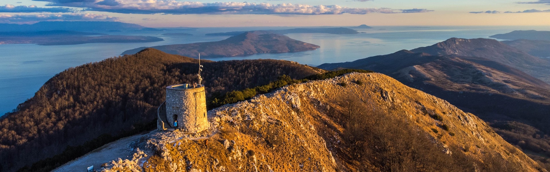 Von seinem Gipfel ergibt sich ein überwältigender Tiefblick auf die Inseln Krk und Cres sowie auf die Küstenorte an der Kvarner Bucht.