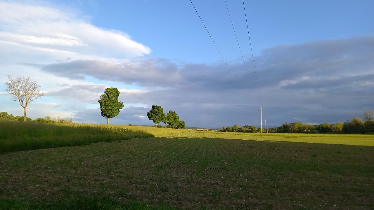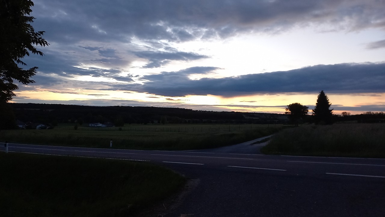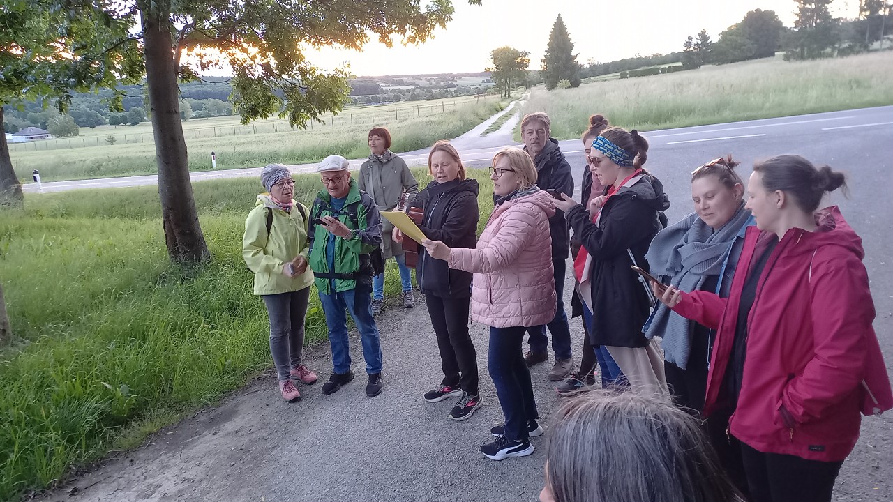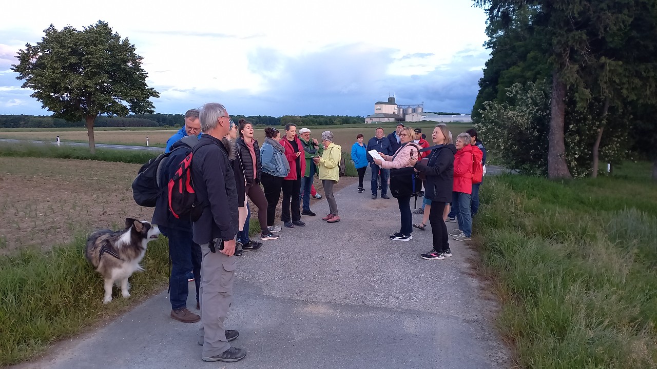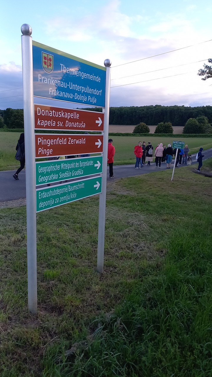 Geplanter Start ist um 4:45 beim Rückhaltebecken hinter der Pfarrkirche von Unterpullendorf. Nachdem wir um 3 min zu spät dran sind sehen wir ein kleines Grüppchen von Frühaufstehern den Hügel in Richtung Hutweide hinauf wandern. Zum Glück bemerken sie die Nachzügler und warten auf uns.