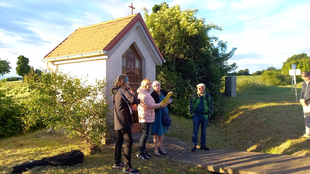 Eine davon ist eine Sonnenaufgangswanderung von Marterl zu Marterl mit dem Ziel bei der Donatuskapelle beim bgld. Mittelpunktstein im Weingarten.