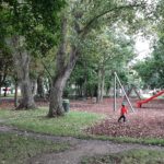 Doch die Natur beginnt, sich den Raum zurückzuholen. In den Betonfugen sprießt zartes Grün, Steine sind teilweise herausgebrochen.