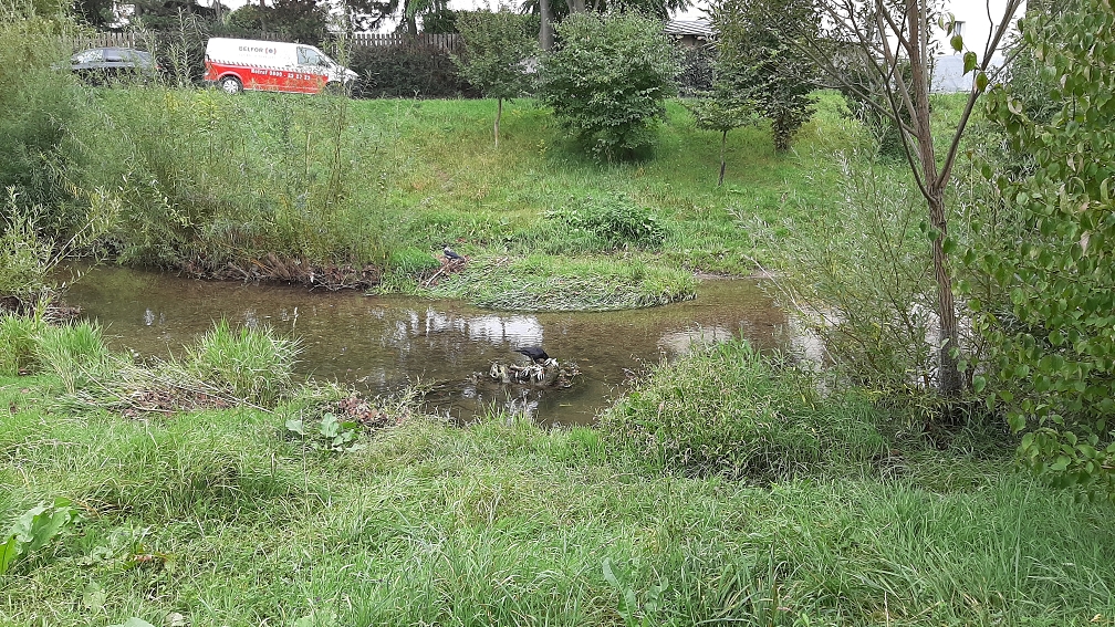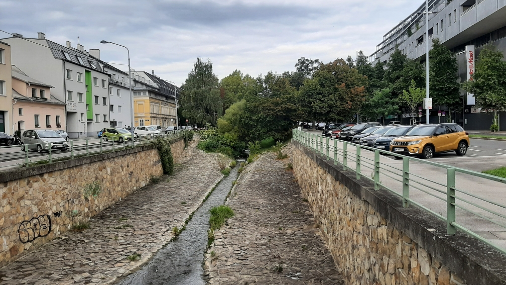 Der Liesingbach, kurz Liesing genannt, gehört neben dem Wienfluss zu den wichtigsten Wasserläufen Wiens. Bei normaler Wasserführung unscheinbar, stellen beide bei Hochwasser eine echte Gefahr dar. Zum Unterschied vom Wienfluss wurde bei der Liesing der Fehler der Regulierung im innerstädtischen Bereich inzwischen erkannt und ihr durch Rekultivierung teilweise wieder Freiräume geschaffen, die sich zu idyllischen Oasen entwickelt haben. Ein Teil davon, zwischen dem Bhf. Liesing und dem Stadtrand, ist heute unser Ziel.Wir treffen uns vor dem Bahnhof Liesing, unter dem die Liesing in zwei Rohren verschwindet. Wir überqueren den gegenüber liegenden Marktplatz und los geht es flussaufwärts am linken Ufer. Noch immer sind Reste der harten Verbauung, die im Zeitraum von 1947 bis 1969 durchgeführt wurde, zu sehen.