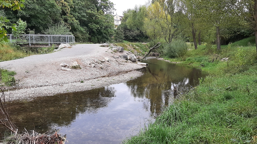Über den Brauereisteg, der an die längst verschwundene Liesinger Brauerei