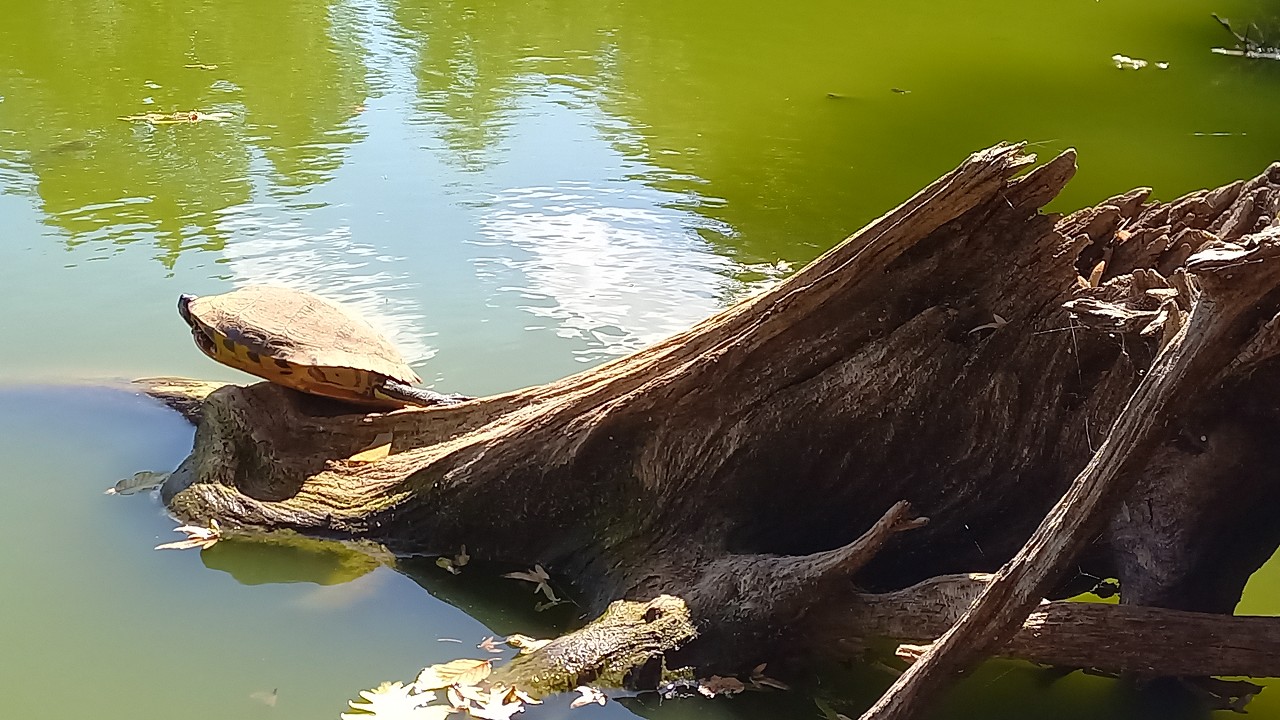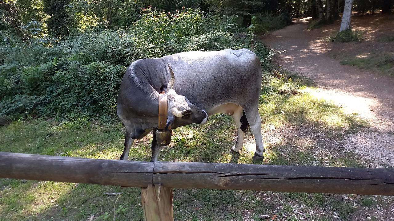 Wir starten am Parkplatz entlang der Straße und begeben uns vorerst zum „Laghetto“. Ein Waldlehrpfad sollte uns etwas „nutzloses Wissen“ über den Nationalpark einpauken aber es finden sich keine passenden Infotafeln und abgesehen von einem Einheimischen mit Honig-Standl gibt es auch kaum lernwillige Wanderer. Interessanterweise weiden einige Kühe auf dem Areal rund um den idyllisch gelegenen Teich den wir schnell halb umrundet haben. Weil eine Kuh standhaft ihren Platz auf dem Rundweg verteidigt kehren wir sicherheitshalber um – man liest ja soviel über die rabiaten Biester. Weniger gefährlich scheinen die zahlreichen Schildkröten zu sein die zuhauf auf den im Wasser liegenden Ästen ein Sonnenbad nehmen.