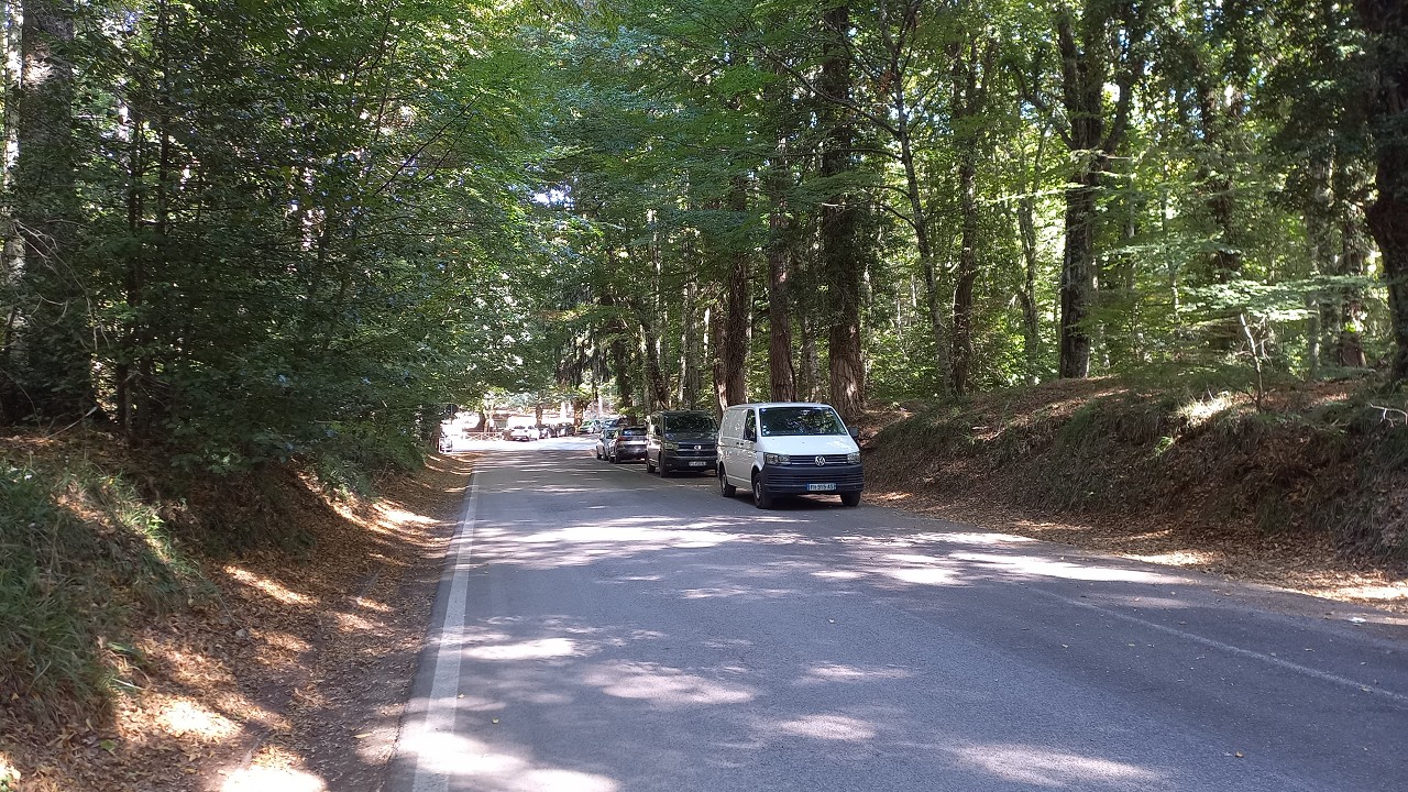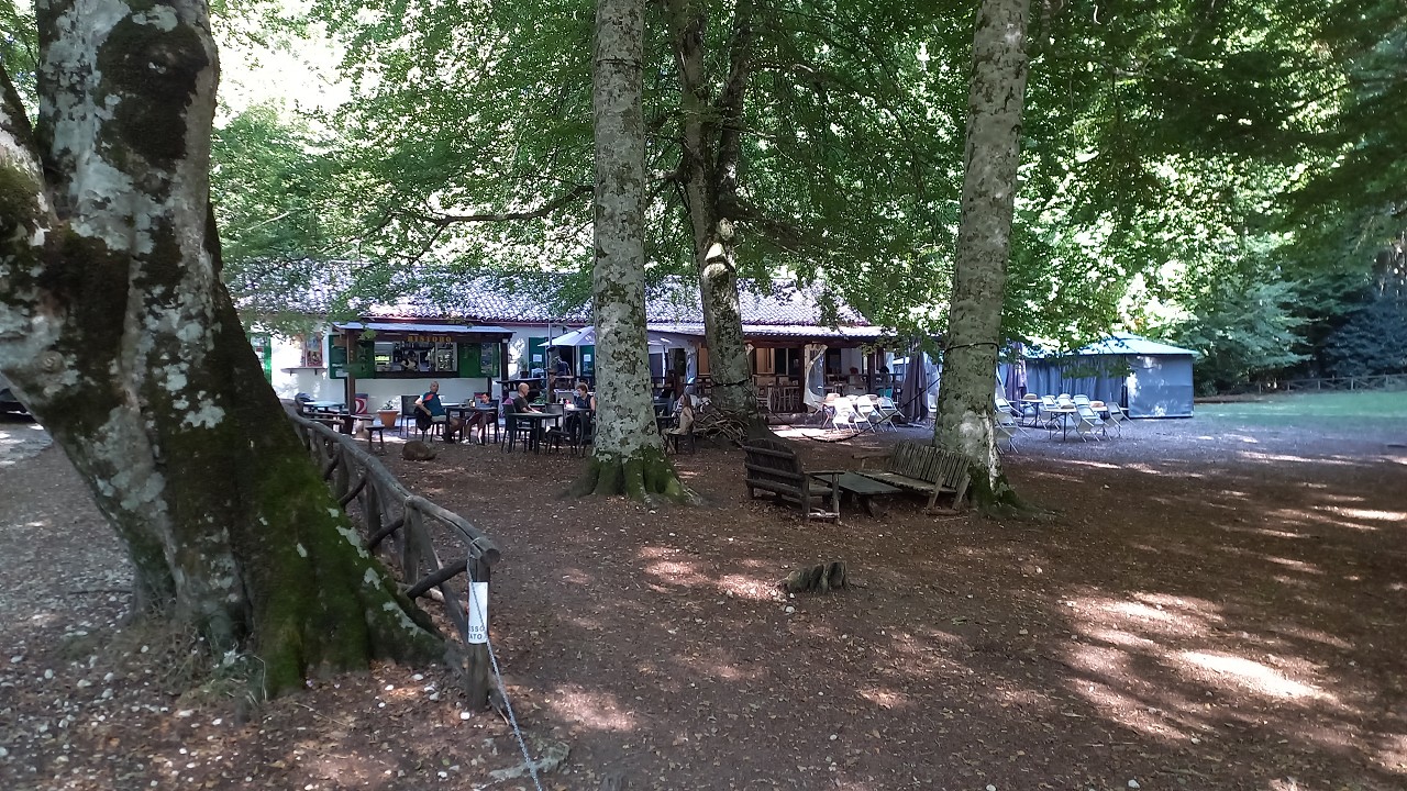 Wir verlassen den Teich und wandern auf der anderen Straßenseite hinauf, an Picknick-Plätzen vorbei zur gut besuchten SB-Trattoria.