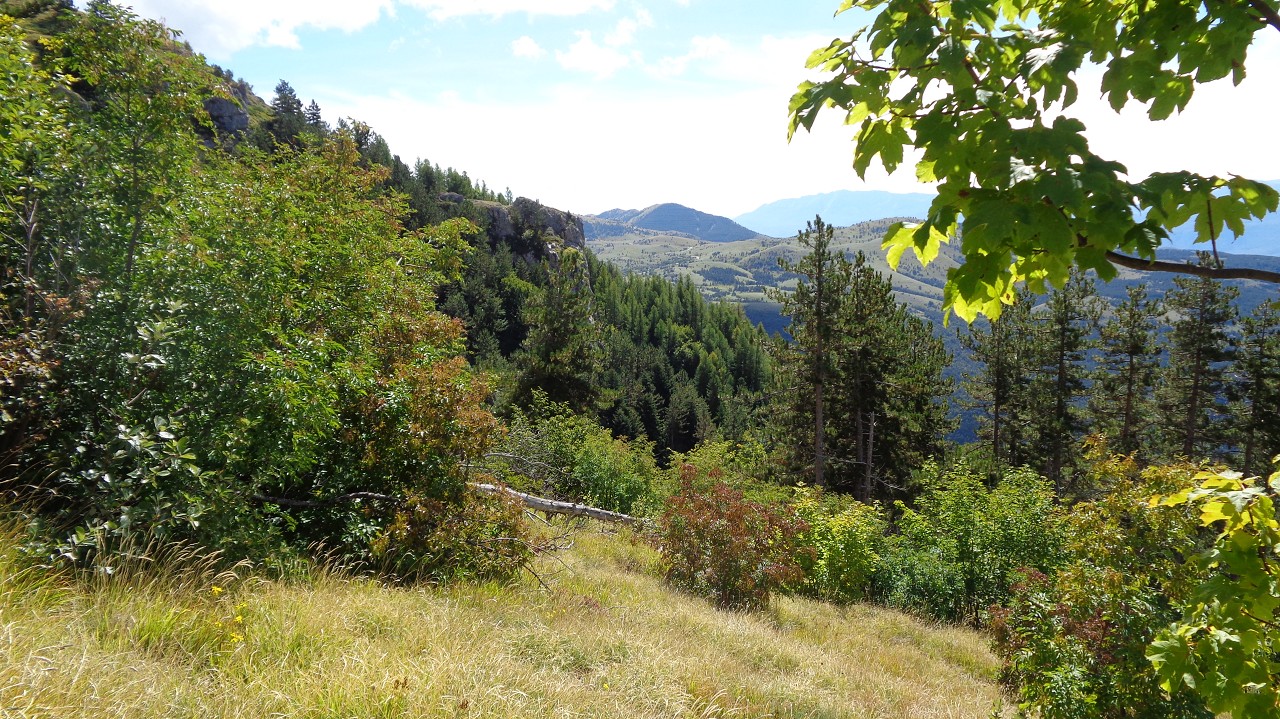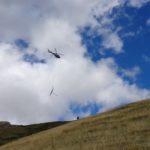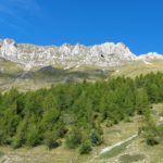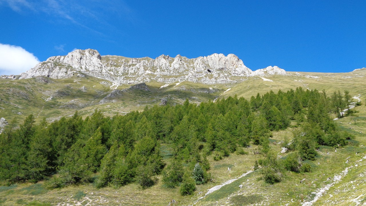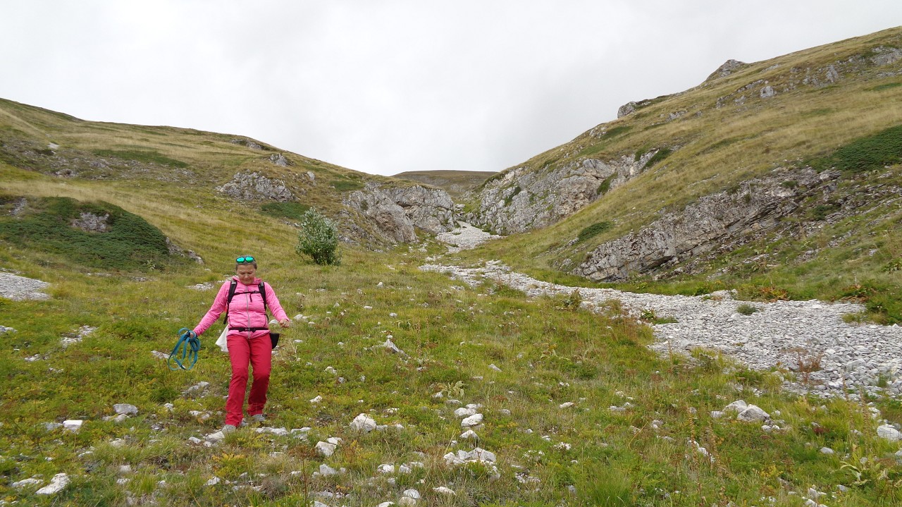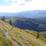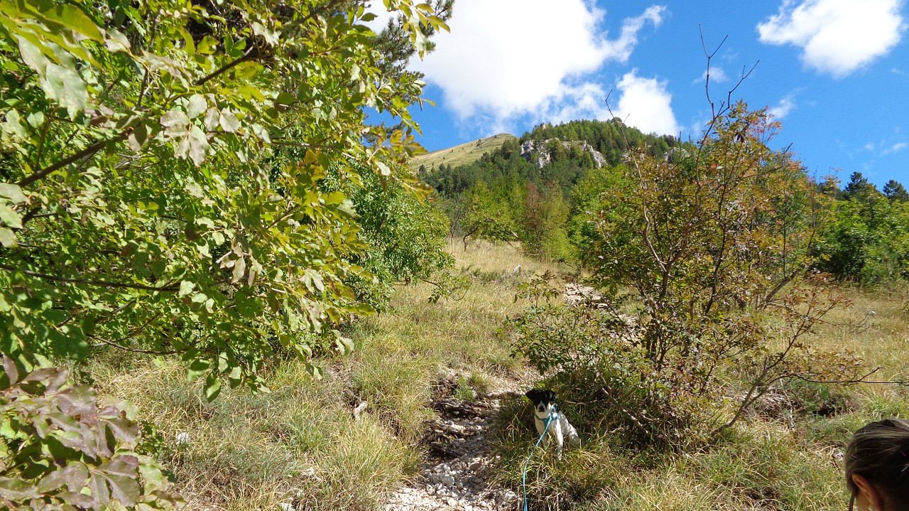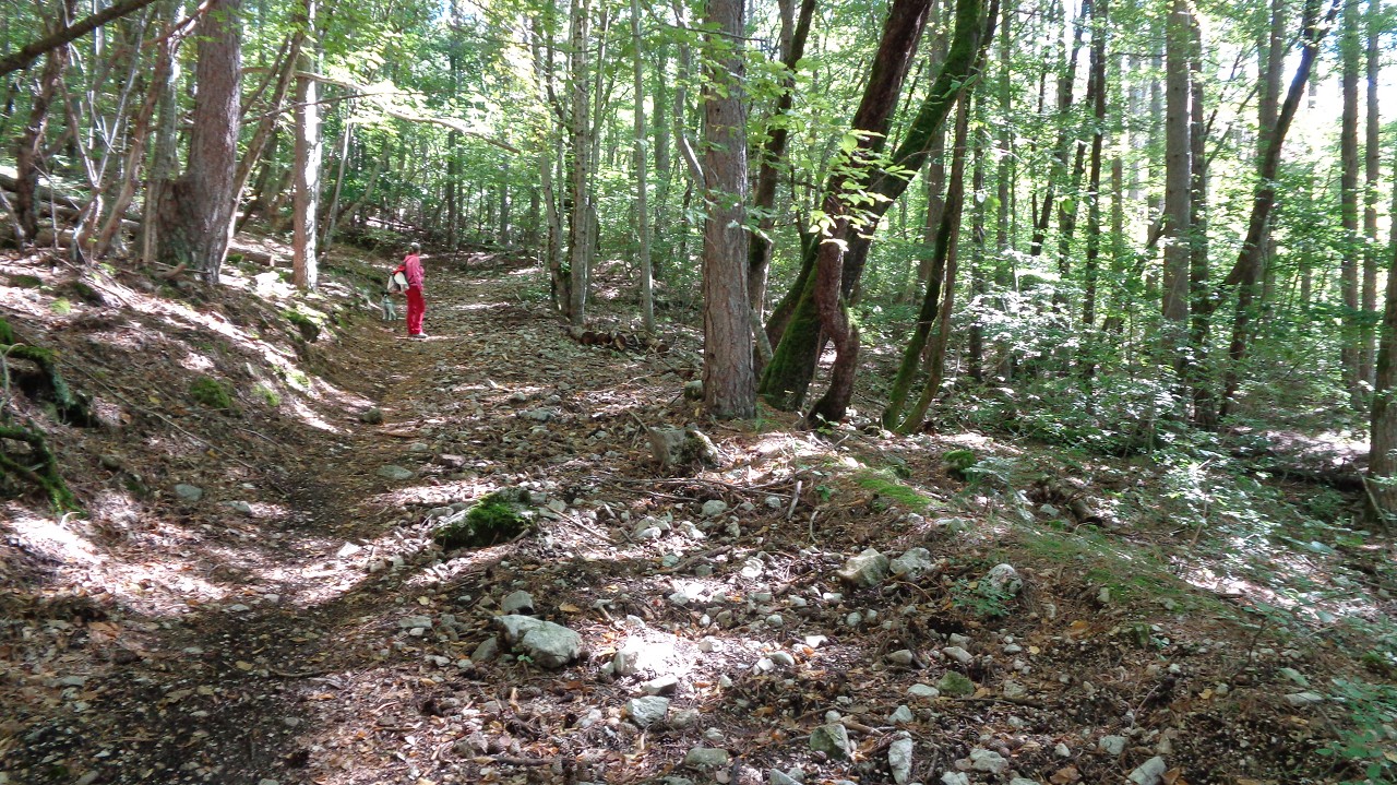 Wir starten in 1100 m Höhe am Parkplatz wo ein Hubschrauber die Stahlelemente einer Lawinenverbauung abtransportiert. Es geht hinauf zu den Hotels und zur Talstation der Seilbahn. Der Weg 102 biegt links in den Wald hinein und sogleich beginnt der Anstieg. Ohne ein flaches Stück geht es bald auf unzähligen Serpentinen hinauf und manchmal ergattern wir einen Blick ins Tal. Unaufhörlich knattert der Helikopter über unseren Köpfen unt stört die Idylle. Für einen Flug hinauf braucht er etwa 3 min, Ladung absetzen und dann wieder hinunter um das nächste Teil zu holen. Wir machen trotzdem weiter und bald sind wir etwa 500 Hm weiter oben. Jetzt lichtet sich der Wald und es gibt nur mehr vereinzelte Latschengrüppchen. Später gibt es nur mehr Gras und verschwitzt erreichen wir die kleine Quelle Fonte Della Portella auf 1880m. Hier machen wir eine Rast und verkosten das frische Quellwasser. Zum Wolfspass (Passo del Lupo) wären es noch gute 40 min und 250 Hm also nehmen wir den kaum sichtbaren Pfad nach rechts und gehen die Bergflanke entlang in Richtung Bergstation. Mitten am steilen Hang steht einsam eine Tafel mit der Warnung vor Bauarbeiten und linker Hand, etwas oberhalb von uns, liefert der Heli unaufhörlich seine Last ab. Rechts von uns ist auch eine Betonplattform in Bau, wie ein laufender Stromgenerator mit angeschlossener Mischmaschine erahnen lässt. Wir erreichen den Graben wo die Stützen und die Seile der Seilbahn bergwärts führen und in Sichtweite von der Bergstation beschließen wir den Abstieg, auch weil das Wetter umzuschlagen droht. Wir steigen steil hinab zum Wanderweg 170 und folgen den Serpentinen und können die Männer auf der Seilbahn-Gondel von oben sehen. Immer tiefer geht es in den Graben hinein und zwischen beeindruckenden Felsformationen erreichen wir die stillgelegte Mittelstation der alten Seilbahn. Hier endet plötzlich der Weg bei der neuen Stütze also steigen wir zur Betonplattform der alten Seilbahnstütze ab. Hinter dieser erkennen wir den weiteren Weg und sind froh das Ziel im Blick zu haben. Weiter geht es über eine steile Wiese auf Serpentinen talwärts und bei der ersten Stütze tauchen wir wieder in Buschland und Wald ein. Der Weg endet direkt neben der Talstation und nun ist es nicht mehr weit zurück zum Auto.