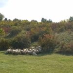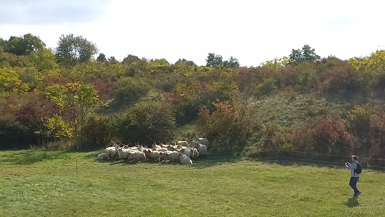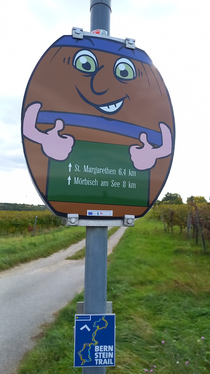 Schade, Abzweigung verpasst und so gehen wir weiter entlang eines elektrischen Weidezaunes zum Güterweg (wird oft von PKW´s mit einer Autobahn verwechselt) von Oslip nach Rust. Dort sehen wir auch die Zackelschaf-Herde welche hier als Landschaftsgärtner tätig ist. Wir überqueren die Straße, bewundern die Herz-Jesu-Kapelle (Marterl) und wandern am Hang entlang nach N bis zur Osliper Florianikapelle (Marterl) bei der Weggabelung Golibrig/Satzwaldäcker. Weiter geht es hinauf in Richtung Seeberg, den wir aber aufgrund der fortgeschrittenen Tageszeit links liegen lassen, und beginnen mit den Rückweg. Ein netter Feldweg bringt uns zurück zum Güterweg Oslip-Rust und dann weiter zum Silberberg. Knapp unterhalb vom unscheinbaren Gipfel wandern wir durch Weingärten und dann auf dem Bernstein Trail zurück in Richtung Römersteinbruch.