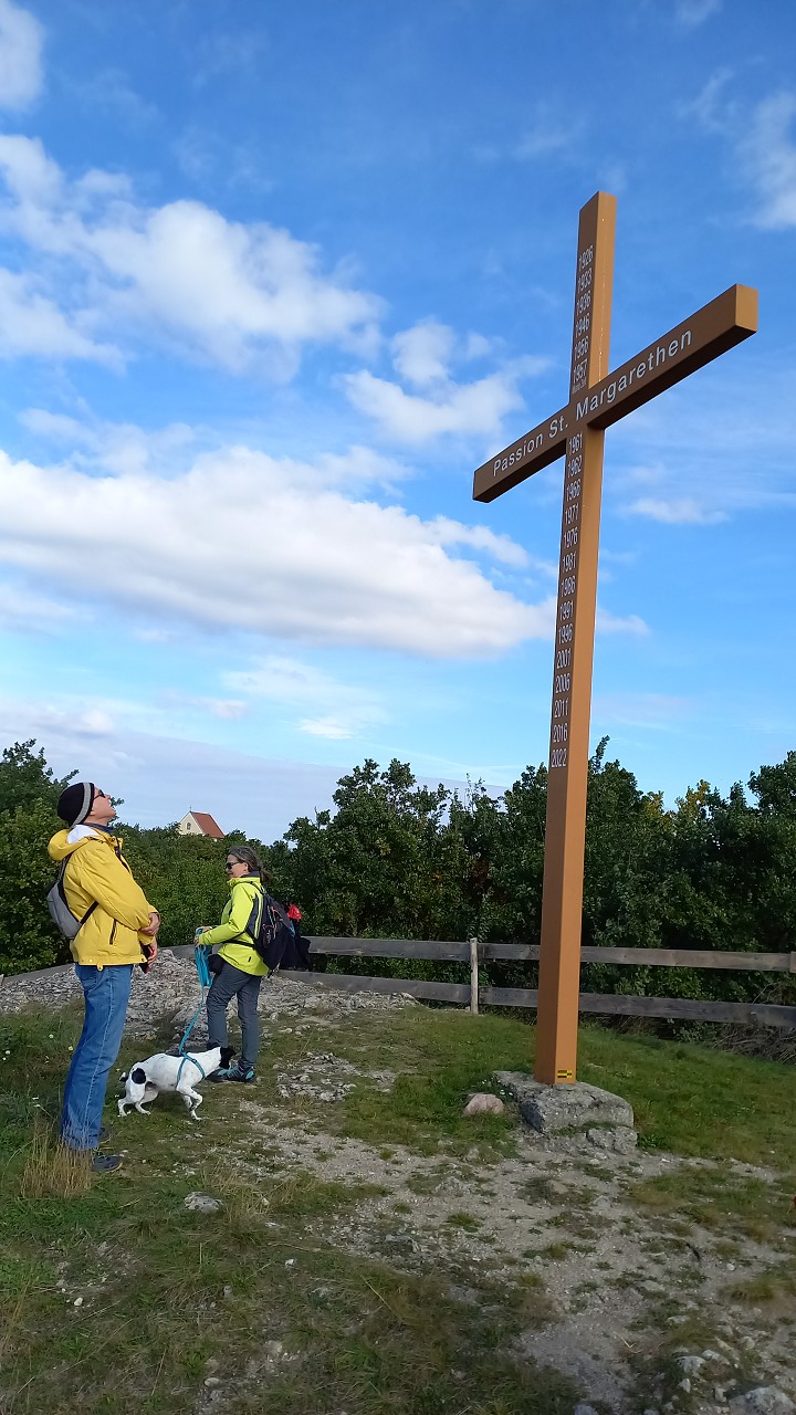 Doch mehrere Steinbrüche in St. Margarethen, Oslip und Fertörakós zeugen von der einstigen Bedeutung des Bergbaus. Teile der Wiener Ringstraße sowie der Stephansdom sind aus Kalkstein des Ruster Hügellandes gebaut.Wir starten vom Parkplatz beim Römersteinbruch in St. Margarethen (auch bekannt für die opulenten Opernaufführungen) und gehen zum Aussichtspunkt auf den Neusiedlersee – sehr nett! Weiter geht´s durch ein Wildgatter hinein in den Skulpturenpark wo die Werke verschiedenster int. Bildhauer in den Trockenwiesen platziert sind. Bald erreichen wir das große Holzkreuz mit den Aufführungsjahren der bekannten St. Margarethner Passionsspiele. Von da ist es nur mehr ein Katzensprung zur Kogelkapelle  am Gipfel des ebenfalls 224m hohen Kogel mit schöner Aussicht auf Eisenstadt bis hin zum Hohen Hengst und Schneeberg. Durch pannonisches Buschland geht es nun steil hinunter in die Weingärten, dann vorbei am Weissen Kreuz (Marterl) und beim Kramerkreuz (Marterl) hinüber zum Silberberg.