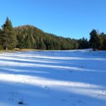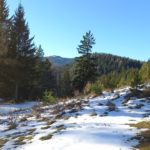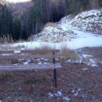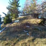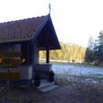 Wir starten bei der Großbaustelle des Semmering-Basistunnels im Göstritzgraben am Parkplatz für den Baustellen-Infoturm. Gleich dahinter verschwindet der Weg im Wald und es geht gleich ordentlich bergauf. Abschnittsweise steinig windet er sich ca. 200 Hm hinauf bis zur Schanzkapelle. Dort kurz durchschnaufen und weiter Richtung Kummerbauer. Der Weg ist zwar gesperrt aber wir biegen ohnehin nach ca. 120 m ab. Mit einem roten Punkt mit Pfeil markiert zweigt ein schmaler, unscheinbarer Pfad links ab, den man leicht übersehen kann. Dieser führt zuerst leicht aber bald stark ansteigend hinauf wobei die roten Punkte an einzelnen Bäumen als Wegweiser dienen. Bei einem Bankerl machen wir kurz Rast und steigen dann weiter steil in Richtung Kleinen Otter hinauf. Bei der nächsten Kreuzung mit einer Forststraße verpassen wir die Abzweigung und wandern so am Forstweg weiter bis wir bei einem Wegweiser wieder auf einen Pfad nach oben zum Sattel zwischen Kleinem Otter und Mitterotter stossen. Oben angelangt gibt es einen Wegweiser nach rechts zum Kleinen Otter und links zum Mitterotter. Ein kurzer Anstieg am Bergkamm auf nadelbedecktem, mit ein paar Schneeflecken angezuckerten Waldweg und wir erreichen einen mächtigen Felsen. Hier kommt auch rechterhand der verpasste, mit vom Windbruch umgeworfenen Bäumen verlegte Pfad herauf. Wir umgehen den Felsen und erreichen die kleine Gipfelwiese. Gute Geister haben hier schon ein Fundament betoniert, sodaß auch der Kleine bald ein ordentliches Gipfelkreuz haben wird (↑ nächsten Besuch einplanen). Das hier ein ganz besonderer Ort ist zeigt der tolle Tiefblick auf die höheren Gipfel der Wiener Hausberge welche wie Inseln aus dem Nebelmeer herausragen. Um das vielleicht zu spüren, müsst ihr selber herauf kommen.
