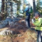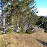 Zum Mitterotter geht es zuerst gemütlich abwärts, um dann den kurzen Anstieg auf den weniger beeindruckenden, aber sehr wildromantisch-abgeschiedenen Gipfel zu bringen. Sogar ein kleines Gipfelkreuzerl steckt im Boden zwischen den Steinen. Im Schatten der mächtigen Buchen lässt es sich noch einmal gut rasten bevor wir uns auf den Weg zum letzten Mitglied der Familie Otter begeben. Vom Mitterotter geht es wieder nach unten auf einen kleinen Sattel. Als wir die Wiese erreichen beschließen wir, dass wir den Großen heute auslassen und gleich auf der Forststraße hinunter zum Kummerbauerstadel