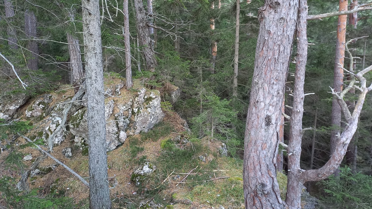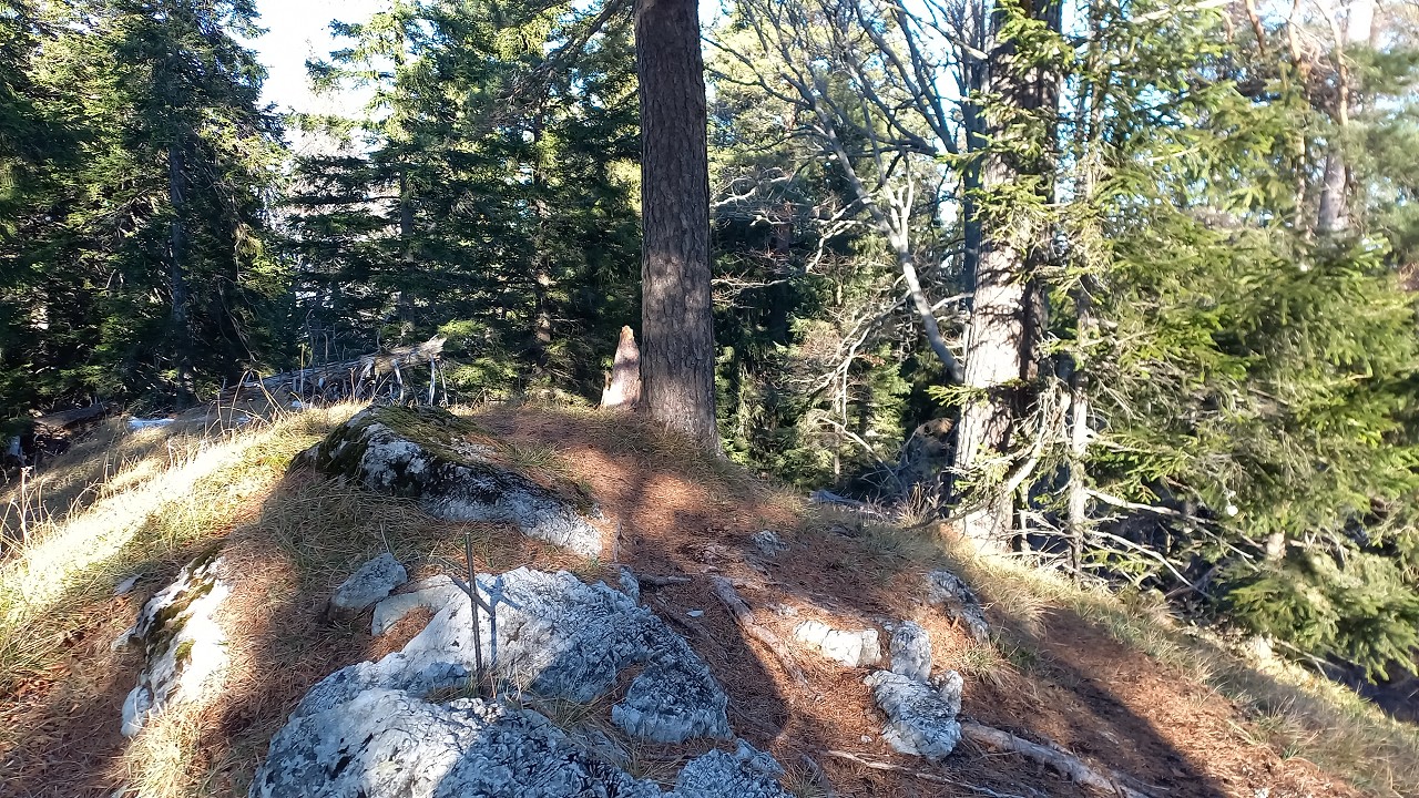 Zum Mitterotter geht es zuerst gemütlich abwärts, um dann den kurzen Anstieg auf den weniger beeindruckenden, aber sehr wildromantisch-abgeschiedenen Gipfel zu bringen. Sogar ein kleines Gipfelkreuzerl steckt im Boden zwischen den Steinen. Im Schatten der mächtigen Buchen lässt es sich noch einmal gut rasten bevor wir uns auf den Weg zum letzten Mitglied der Familie Otter begeben. Vom Mitterotter geht es wieder nach unten auf einen kleinen Sattel. Als wir die Wiese erreichen beschließen wir, dass wir den Großen heute auslassen und gleich auf der Forststraße hinunter zum Kummerbauerstadel