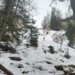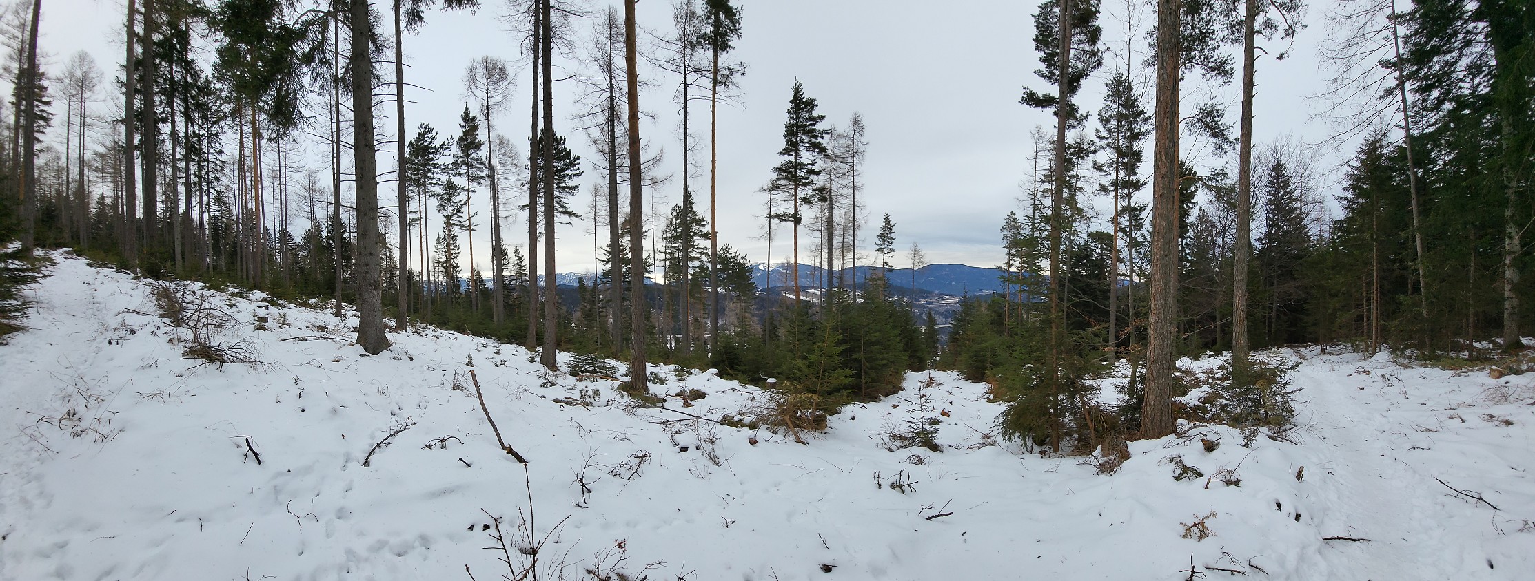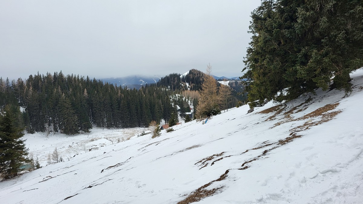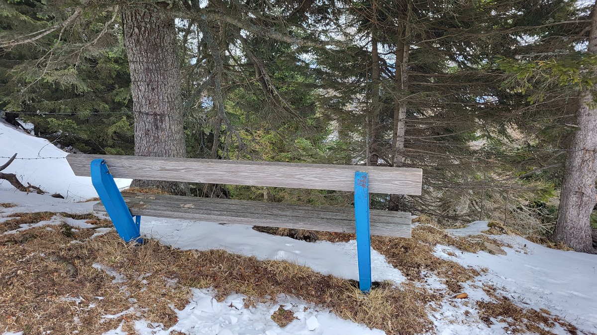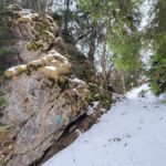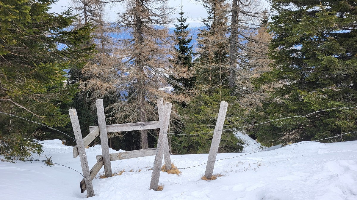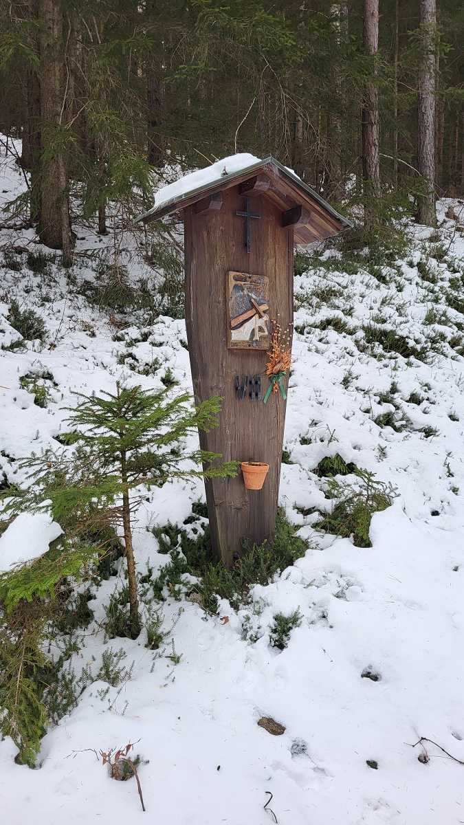 Wir steigen über den steilen Gebirgsjägersteig auf. Aussicht gibt es unterwegs kaum. Es geht durchwegs durch bewaldetes Gebiet. Stellenweise ist es sehr glatt. Ich rutsche mehrmals aus und bereue meine Grödel nicht mitgenommen zu haben. Auf halber Höhe entdeckt Stepahn einige Rehe, die jedoch sofort wieder verschwunden sind.