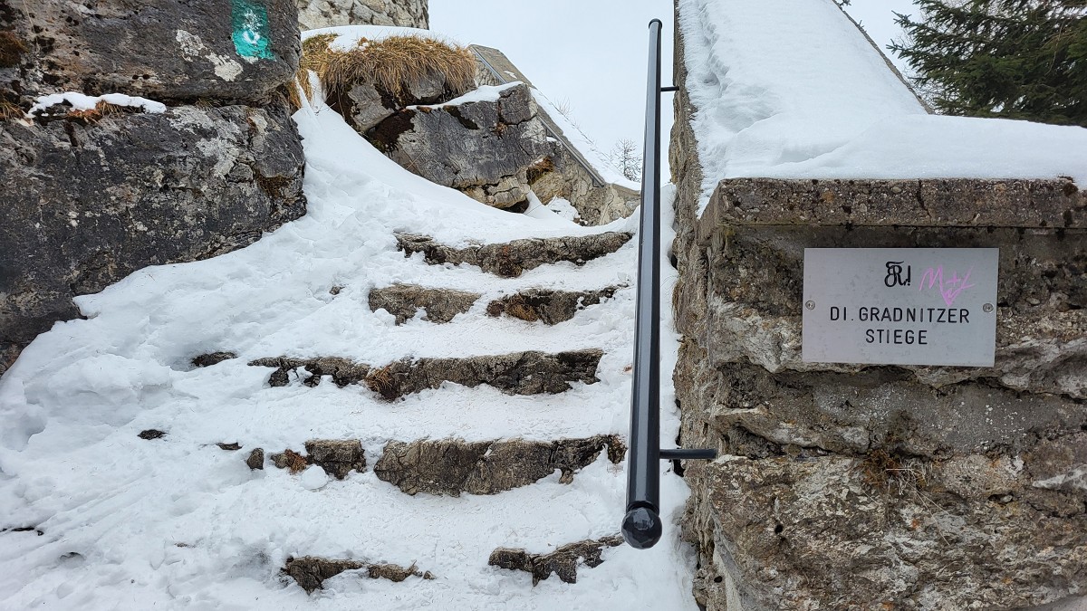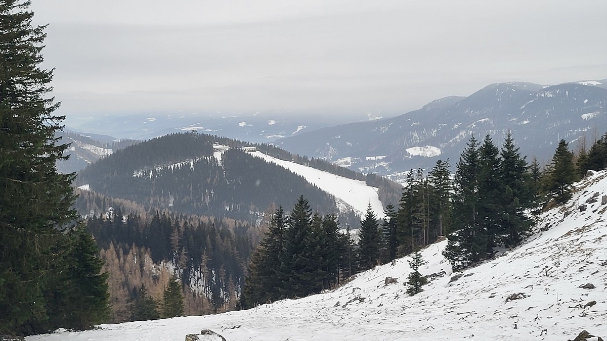Direkt aus dem Winterschlaf in die Kälte. Das Thermometer zeigt -10°C. Da heißt es „warm anziehen“. In Maria Schutz angekommen ist es schon etwas wärmer geworden, aber mit -5°C immer noch frisch.