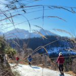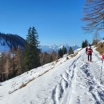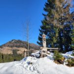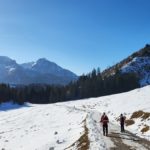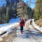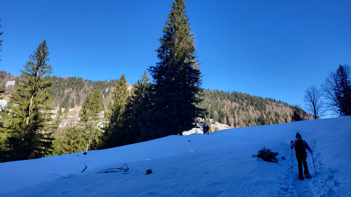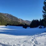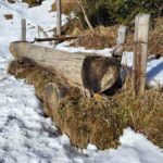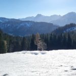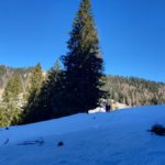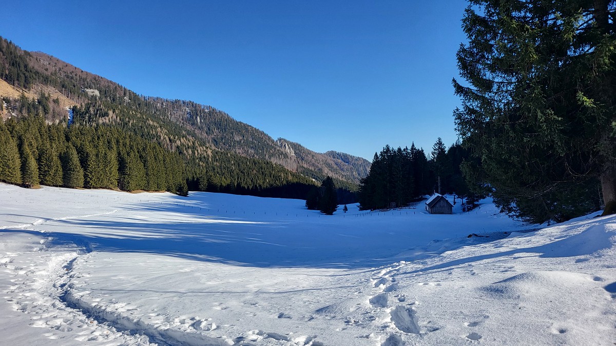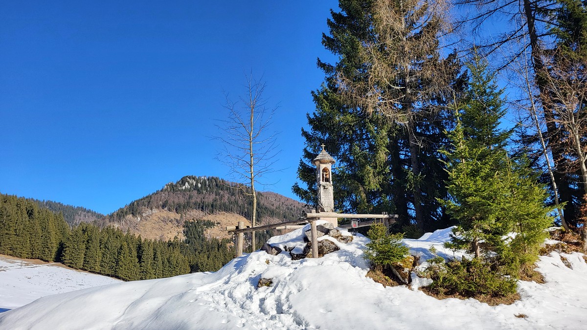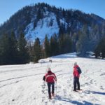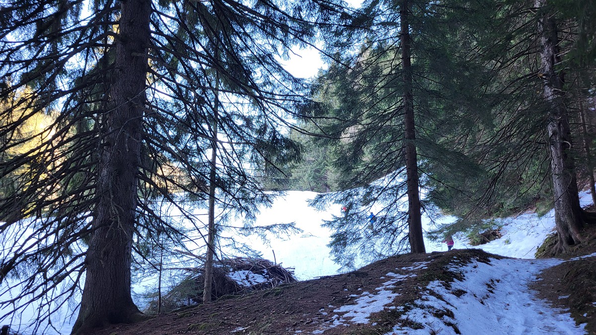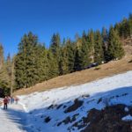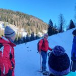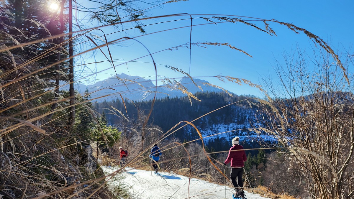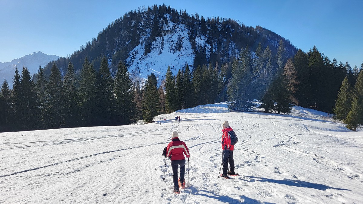 Diesmal liegt Schnee in Hinterstoder. Nicht viel, aber wir sind optimistisch und fahren mit dem Hotelbus auf den Hengstpass bei Rosenau. Wir parken am Parkplatz gegenüber der Zickerreith. Schneeschuhe anziehen und los geht es am Forstweg Richtung Norden.