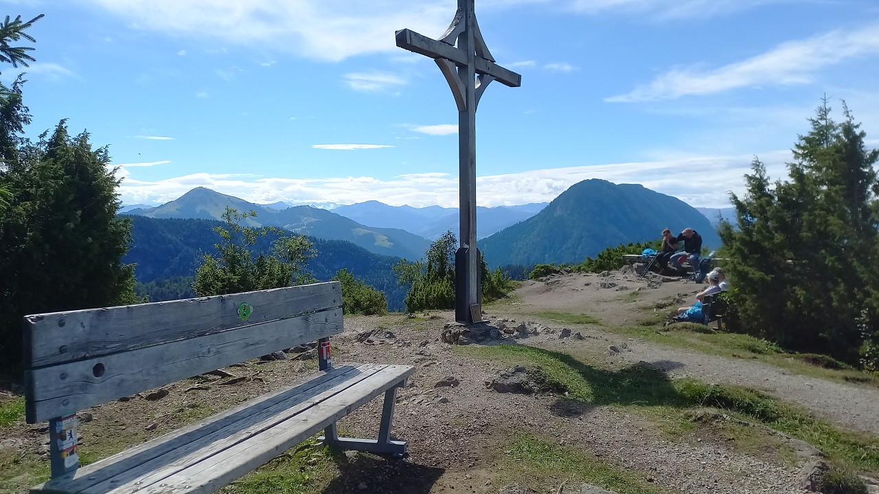 Weiter ging es entlang der Rabnitz und dann einen steilen Anstieg durch den Wald hinauf bis auf eine Hochebene ohne viel Schatten in Richtung Kirchschlag. Da haben wir uns dann bei einer Konditorei einen wohlverdienten Kaffee genehmigt. Bei der lokalen Billa am Ortsrand haben wir uns ein paar Wurstsemmeln als Mittagsmenü besorgt. Mittlerweile war das Thermometer bei 30°C im Schatten. Am asphaltierten Radweg ging es nun den Zöbernbach entlang nach Bad Schönau und weiter bis Krumbach.