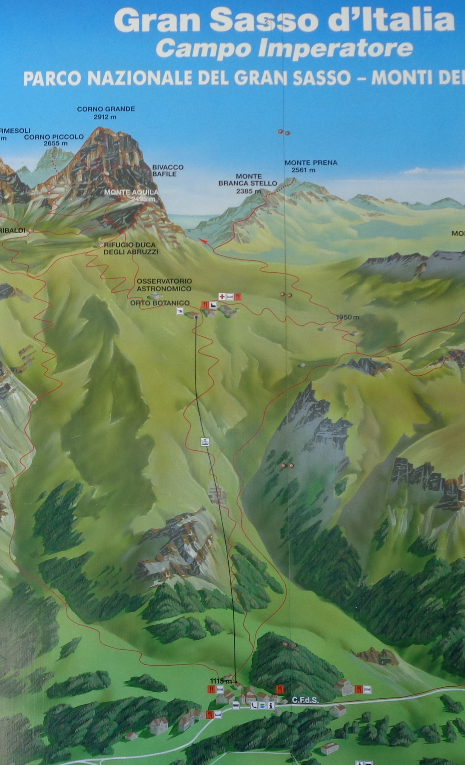 Vom Weiler Fonte Cerreto führt eine kurvenreiche Straße sowie die Seilbahn Funivia del Gran Sasso D’Italia hinauf ins Schigebiet und zum Observatorium auf der Hochebene Campo Imperatore. Die Bahn ist aber „Chiuso per Manutenzione“ (= wegen Wartungsarbeiten außer Betrieb) und so nehmen wir die 1015 Hm bis zur Bergstation zu Fuß in Angriff. Der Gipfel wäre dann nochmal 900 m höher. „Gran Sasso D’Italia, L’Aquila (I)“ weiterlesen